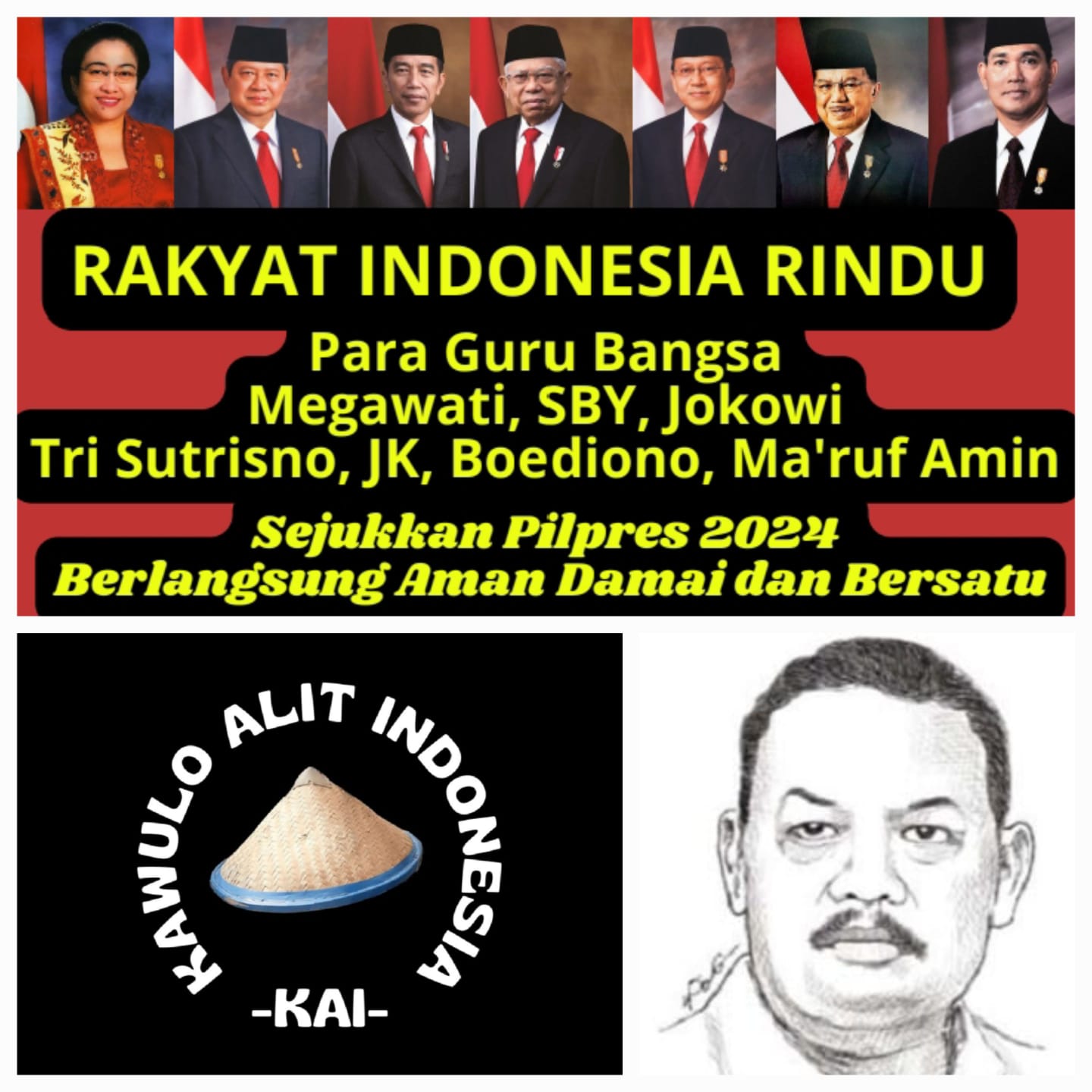 Hal tersebut similiar dengan harapan Kawulo Alit Indonesia (KAI), dimana para guru bangsa, mantan presiden dan wapres, serta Presiden Jokowi dan Wapres Ma’ruf Amin seyogyanya menyejukkan Pilpres 2024, bukan sebaliknya membelah bangsa Indonesia.