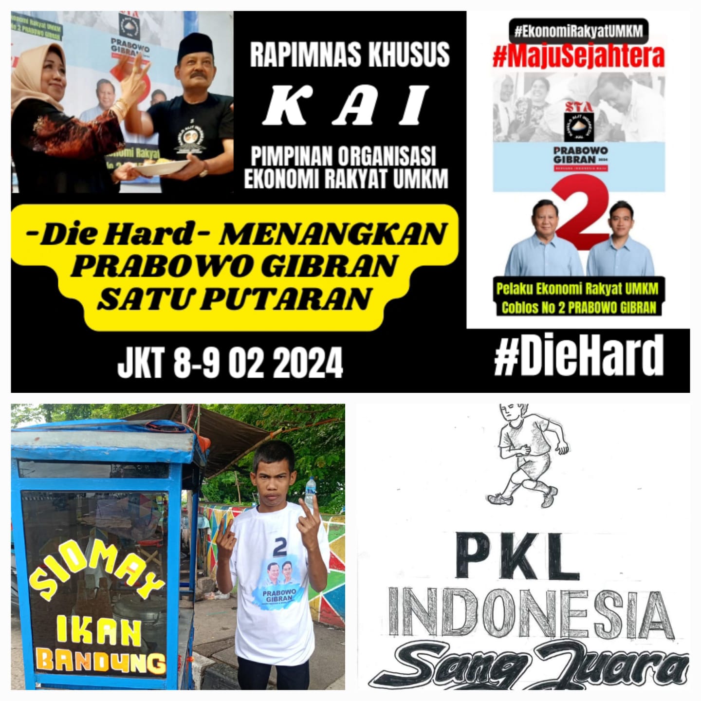 Ali Mahsun yang juga Ketua Umum APKLI Perjuangan ini mengatakan, sebagai puncak melejitkan suara Prabowo Gibran, KAI gelar Rapat Pimpinan Nasional – Rapimnas Khusus Pimpinan Organisasi Ekonomi Rakyat UMKM di Jakarta 8-9 Februari 2024. Dengan grand tema: “Pelaku Ekonomi Rakyat UMKM Die Hard Menangkan Prabowo Gibran Satu Putaran Pilpres 2024”.