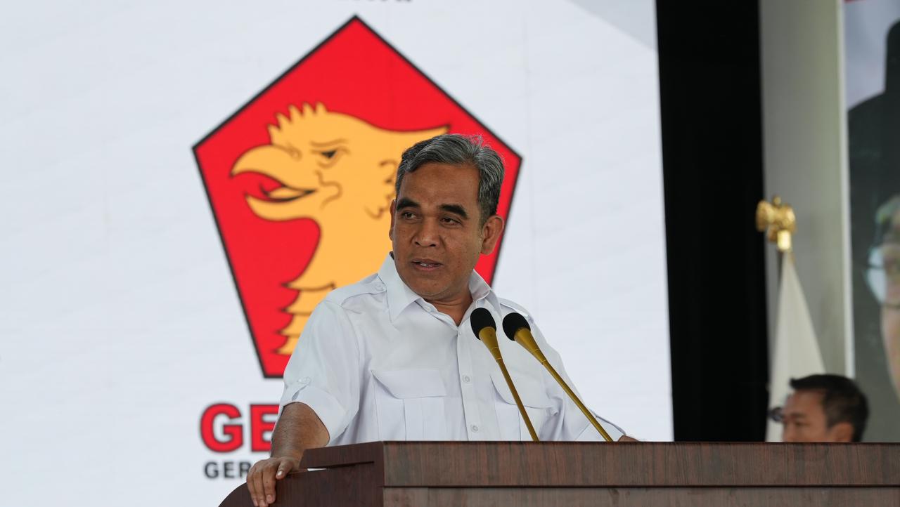 Sekjen Partai Gerindra Ahmad Muzani menghadiri konsolidasi akbar kader Gerindra di Kota Bekasi dan Kota Depok, Minggu (9/7). Ribuan kader Gerindra menyambut dengan penuh semangat untuk memenangkan Ketua Umum Gerindra Prabowo Subianto pada Pilpres 2024.